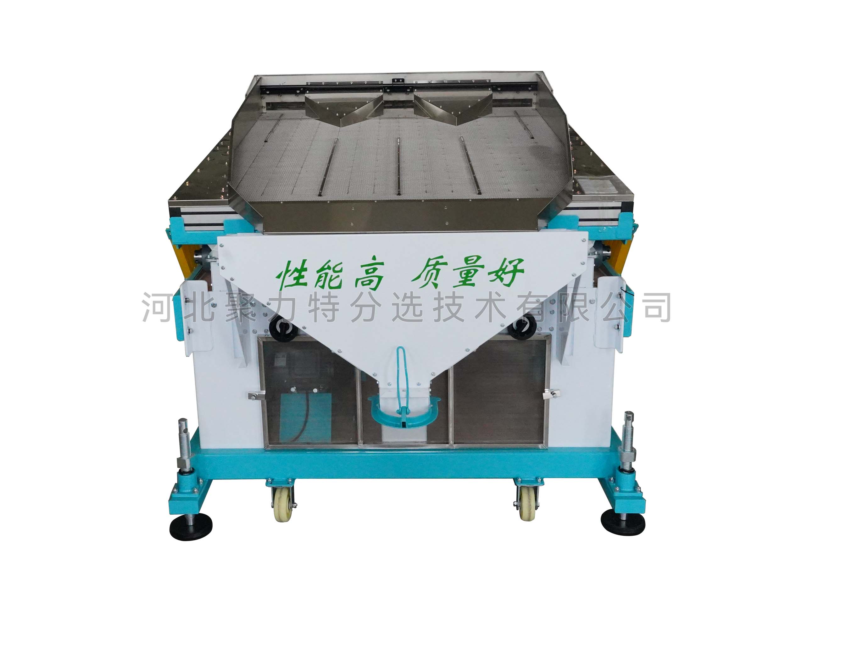 根據(jù)物料中作物和石子的比重差異,通過調(diào)整風(fēng)壓、振幅等參數(shù),使比重較大的石子沉到底部貼著篩面由低向高運(yùn)動(dòng),比重較小的作物懸浮在表面由高向低運(yùn)動(dòng),從而達(dá)到分離的目的。